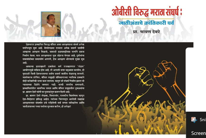 2) ओबीसी विरुद्ध मराठा संघर्ष कोणकोणत्या टप्प्यातून पुढे जात आहे, तो जन्मापासून अंतापर्यंतचा प्रवास जाणून घ्या या पुस्तकातून